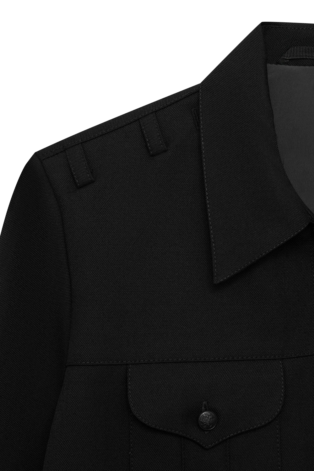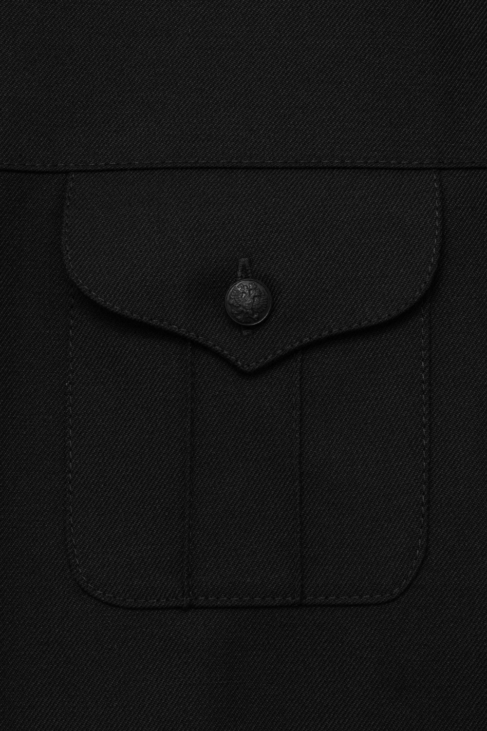 Форменные пуговицы черного цвета идеально сочетаются с основной тканью, создавая эффект монолитного, цельного изделия.